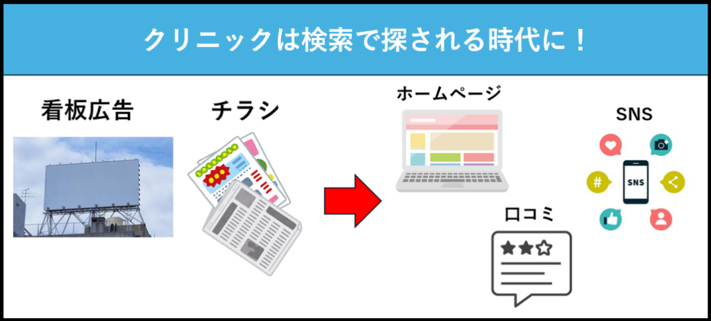かつては、近所の看板や紹介、チラシなどでクリニックを選ぶケースが多くありました。